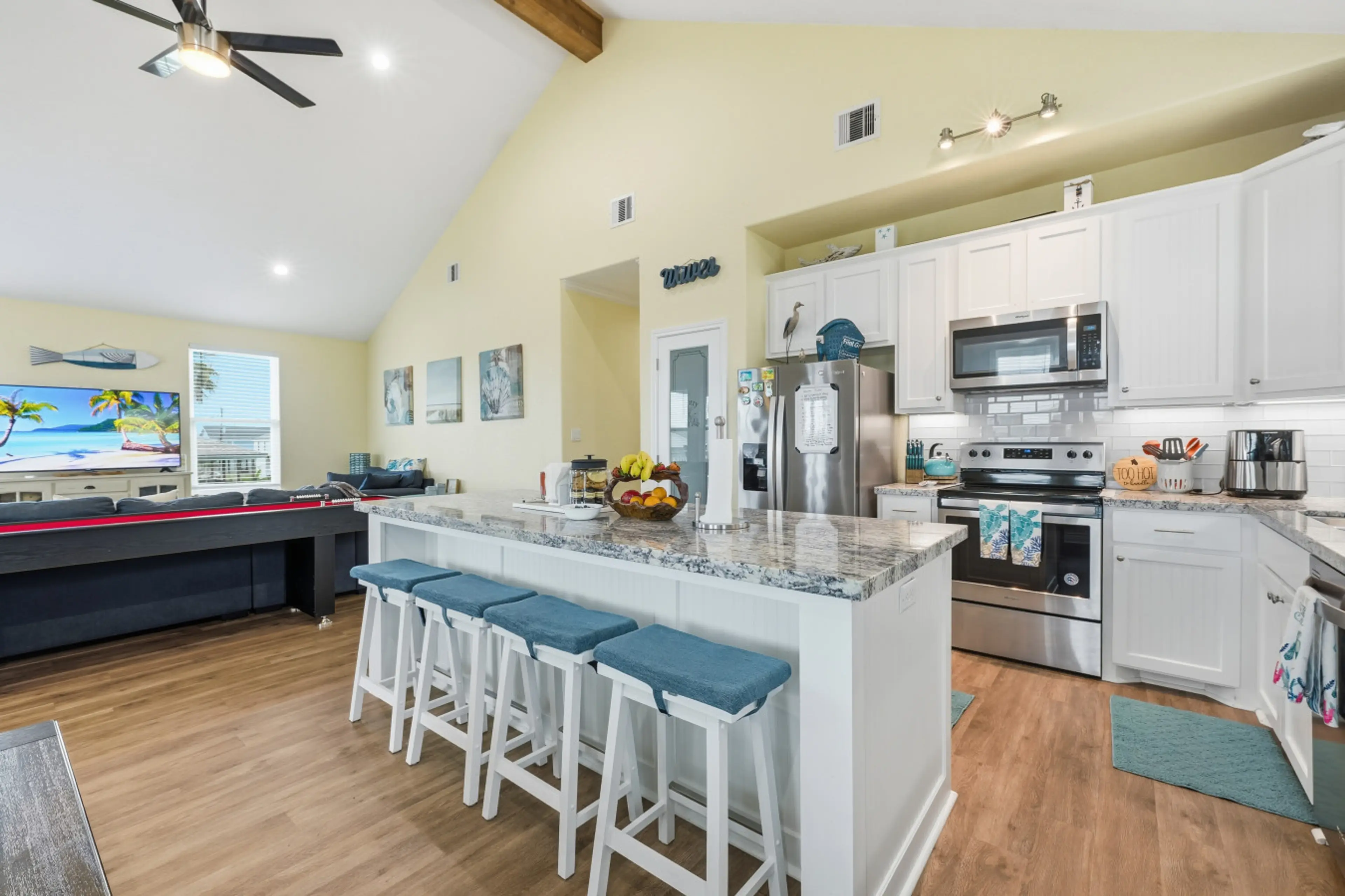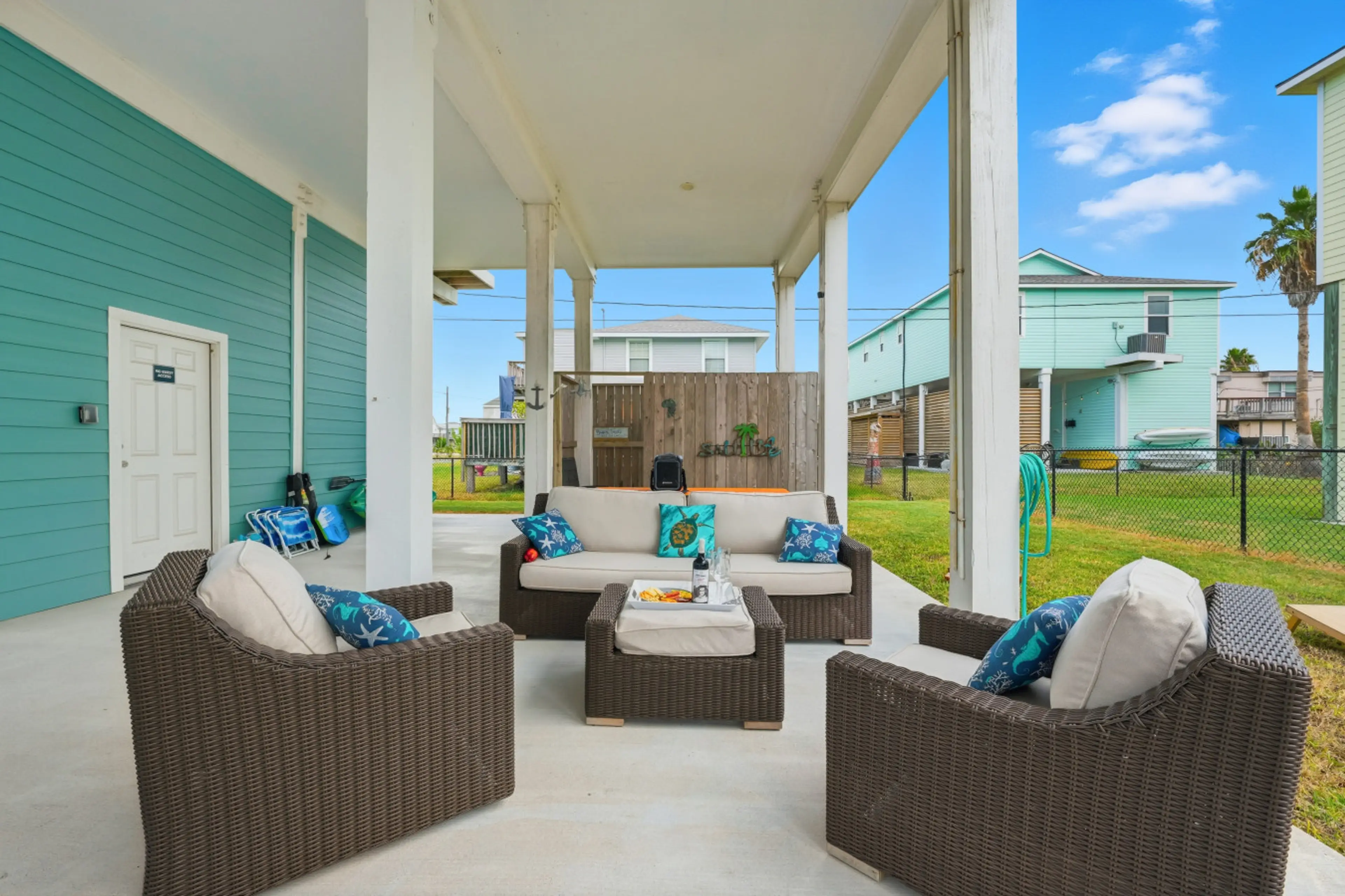 Breathe in the salty sea air and bask in coastal sunshine at this pet-friendly Galveston getaway just steps from Sea Isle Beach. This home offers: 🌴 Spacious fenced yard w/ outdoor games 🌅 Large deck perfect for sunsets 🛏️ Flexible sleeping for up to 8 guests 🍳 Full kitchen w/ Keurig + drip cof...