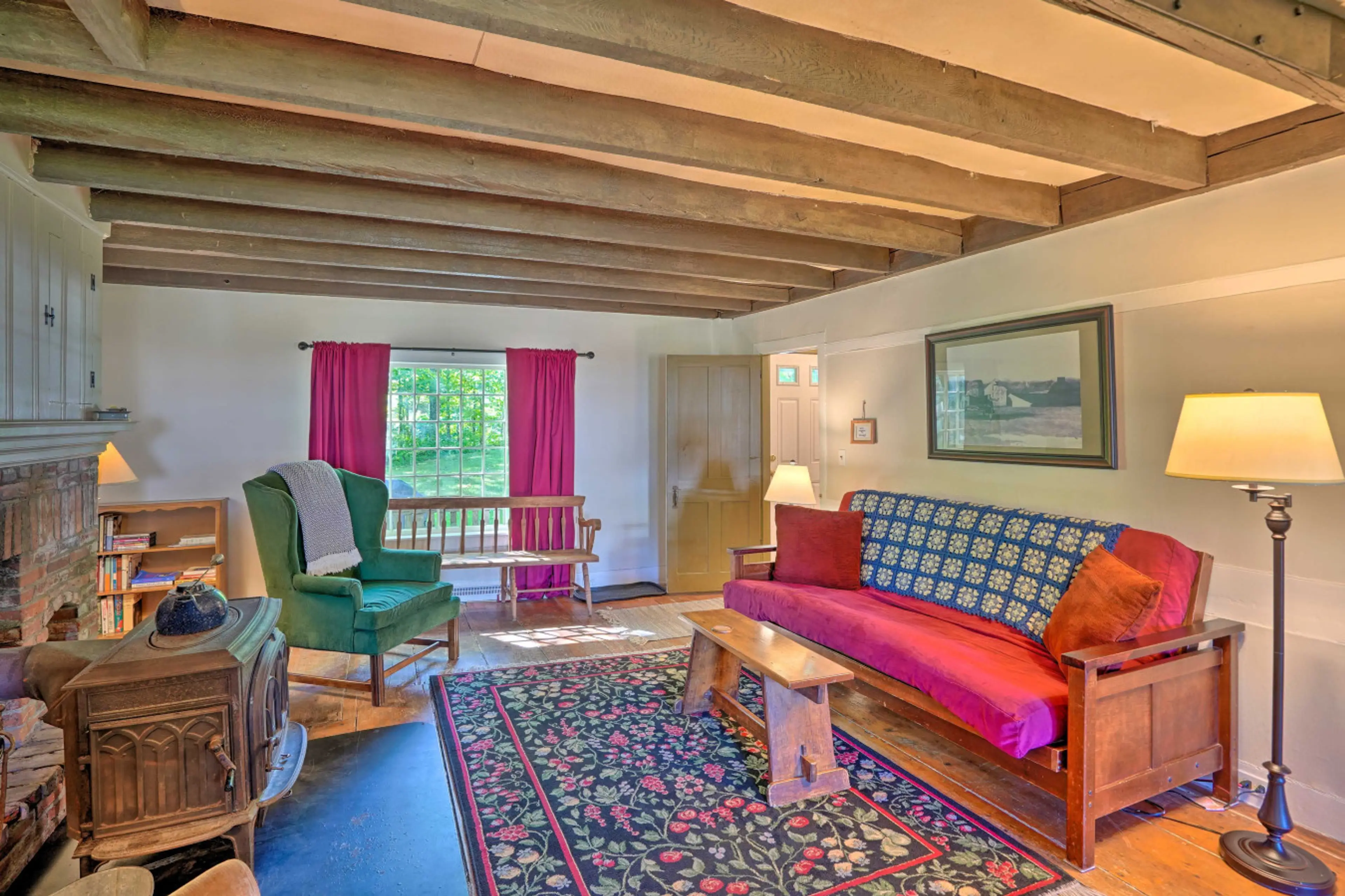 Escape to a cozy farmhouse on 10 secluded acres by the Chickley River, rustic charm meets modern comfort for families, skiers & outdoor lovers. What you'll love: š² 10 private acres on the Chickley River šæ 5 min to Berkshire East ski & hiking trails š„ Wood stove, fire pit & farmhouse charm š¾ Pet...