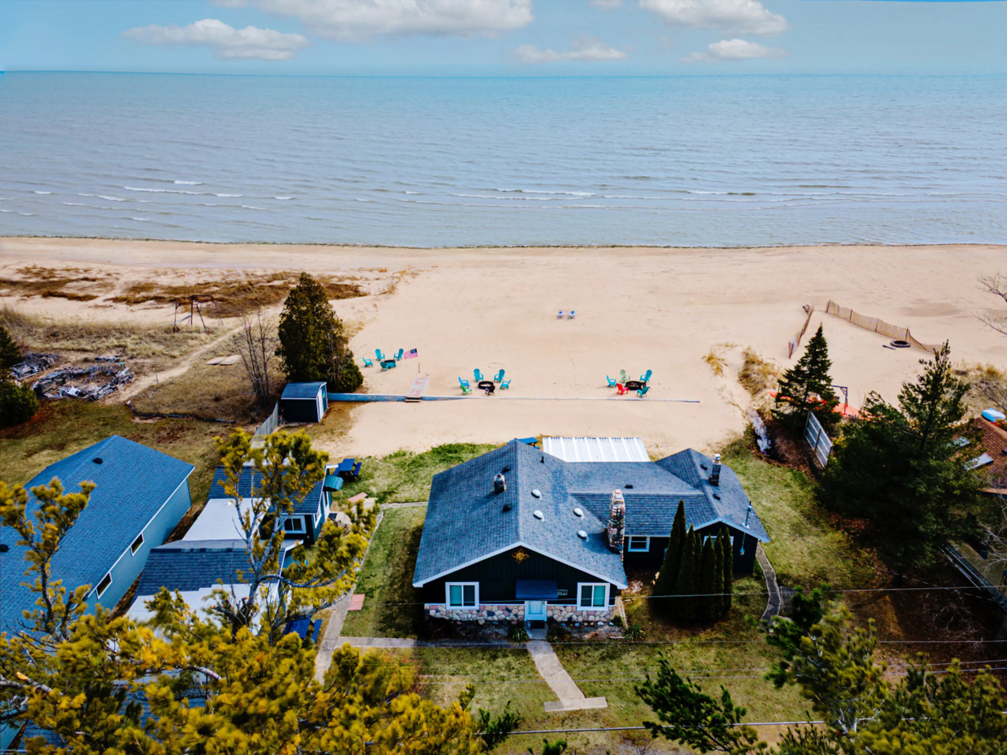 Sparkling Lake Huron views and soft sandy shores make Northern Sands Resort a dream destination for your next escape. Lounge on the beach, gather by the fire pit, or enjoy drinks on the sun porch surrounded by serene pine finishes. This home offers: ๐ Lakefront access & sandy beach ๐ 3 bedrooms ๏ฟฝ...
