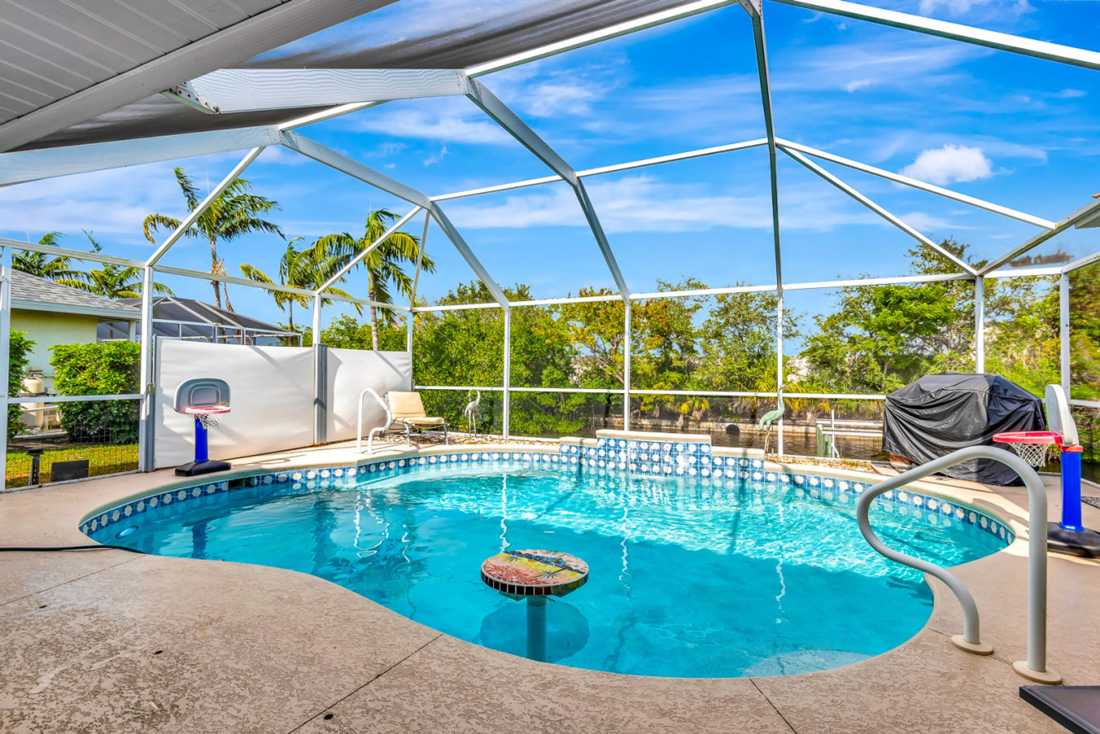 Wake up to peaceful canal views and enjoy laid-back luxury at this stylish Cape Coral retreat. With a private pool, screened lanai, and boat lift. This pet-friendly home is perfect for a sunny Florida getaway. This home offers: ๐ Private dock with 2 kayaks ๐ฎ Game room with ping pong & arcade ๐ฅ O...