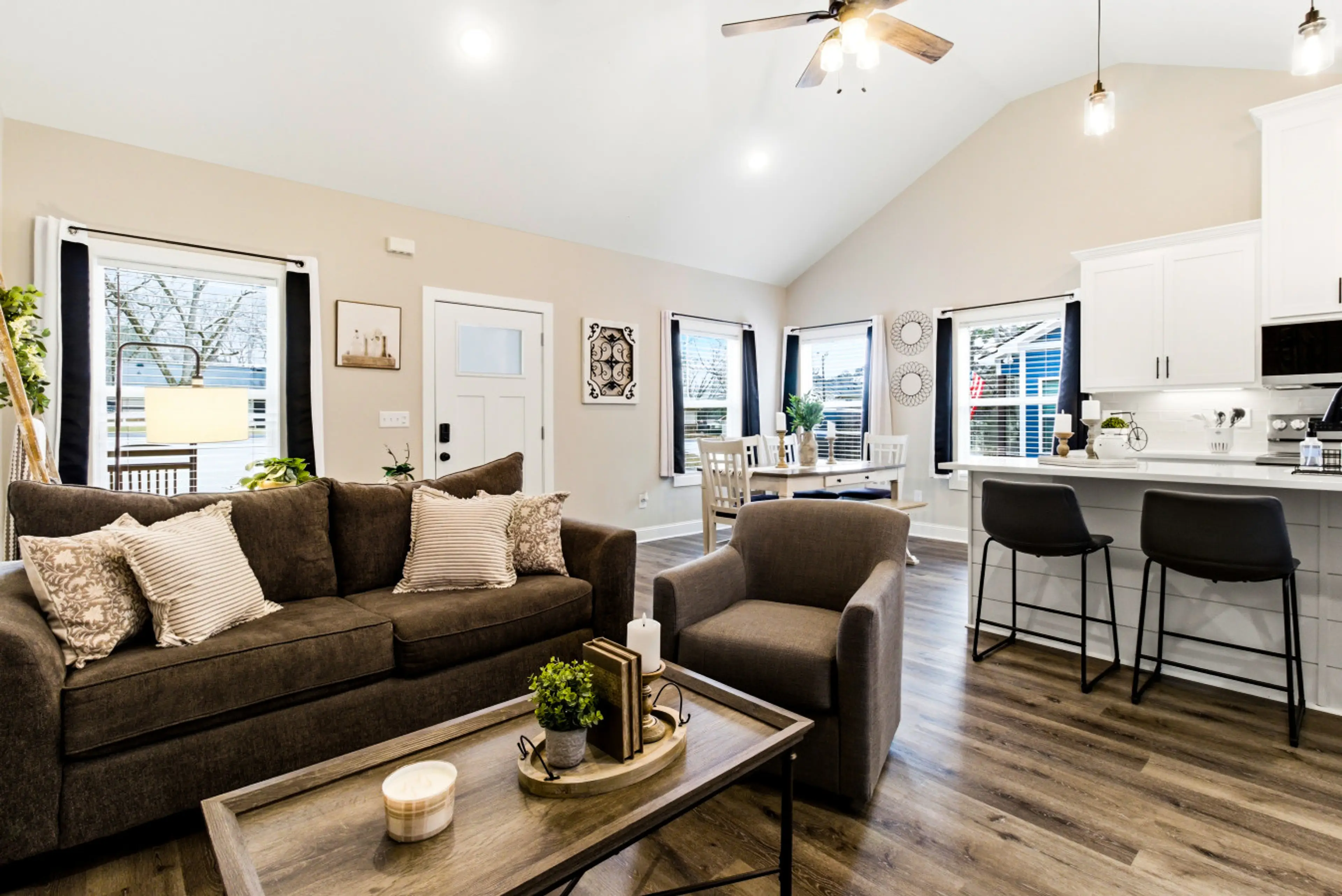 Step into this brand-new 2024 townhome designed for comfort and easy getaways. Vaulted ceilings, modern finishes, and a bright open layout create a retreat just minutes from Pine Mountain favorites. This home offers: 🛏️ King suite plus bunk bedroom 🛁 Two tile-shower bathrooms 🍳 Quartz kitchen wi...