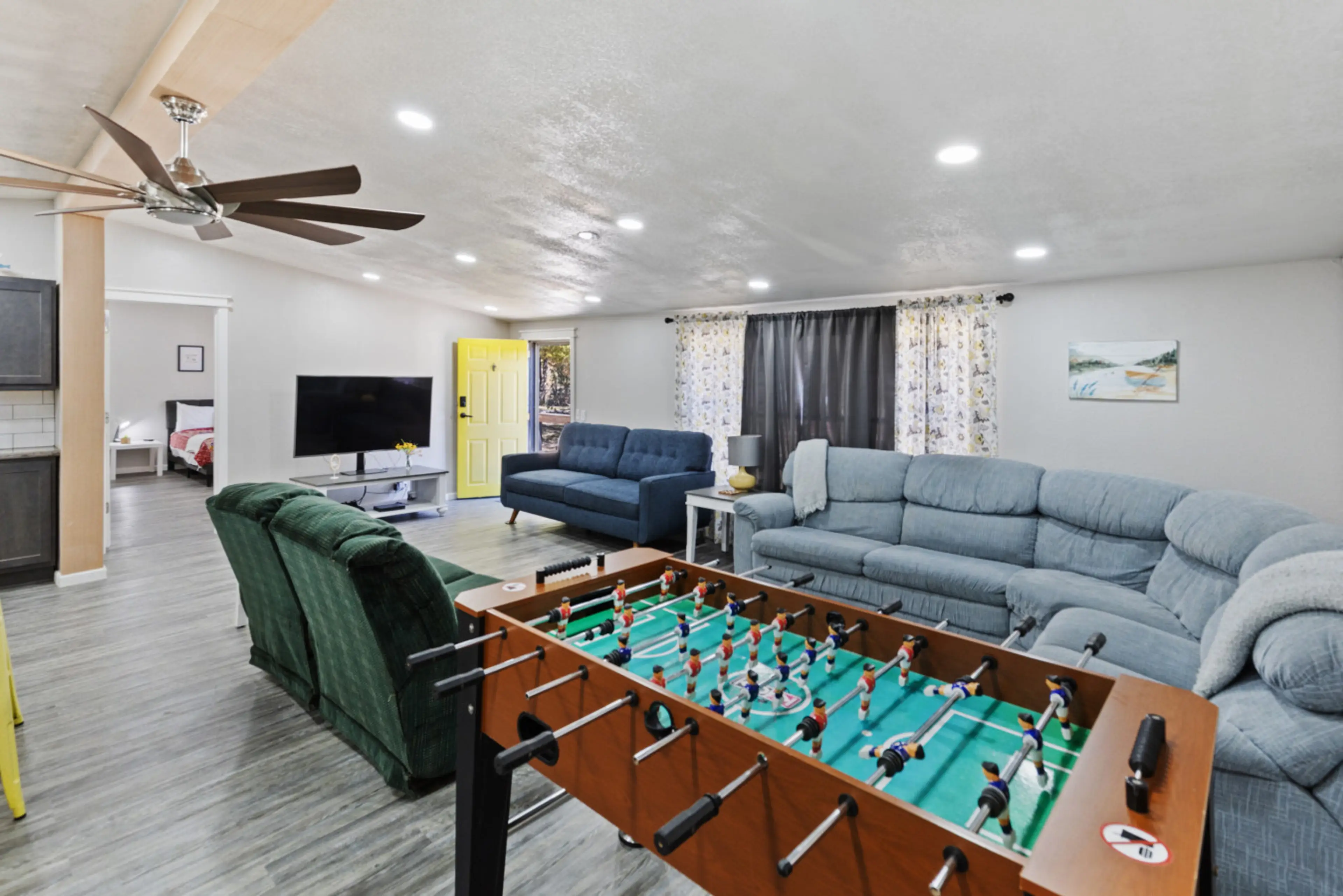 Minutes from Lake Texoma, this pet-friendly cabin is perfect for fire pit nights, deck grilling, game time, and fast Starlink Wi-Fi. This home offers: ๐ฅ Wood-burning fire pit for starry nights ๐ฑ Foosball & board games for rainy-day fun ๐พ Dog run & pet-friendly amenities ๐ณ Full kitchen w/ coffee...